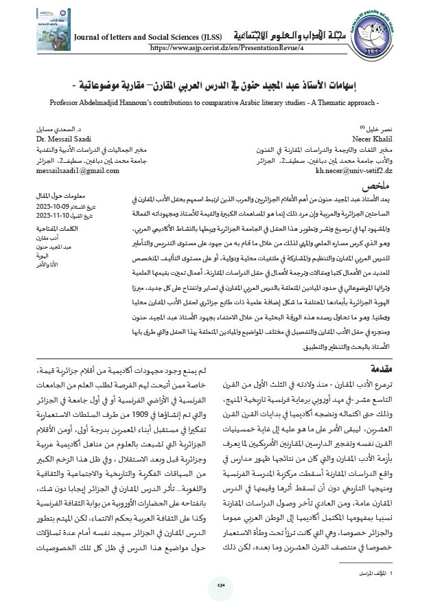 مجلة علمية فصلية مفهرسة، مُخصصة لمجالات المعرفة والمنهجية في العلوم الإنسانية والاجتماعية. تصدر عن جامعة محمد الأمين دباغين - سطيف 2، وتساهم في إثراء البحث العلمي، والحوار المنهجي المعمق، في مجالات المعرفة الاجتماعية. تهدف إلى: