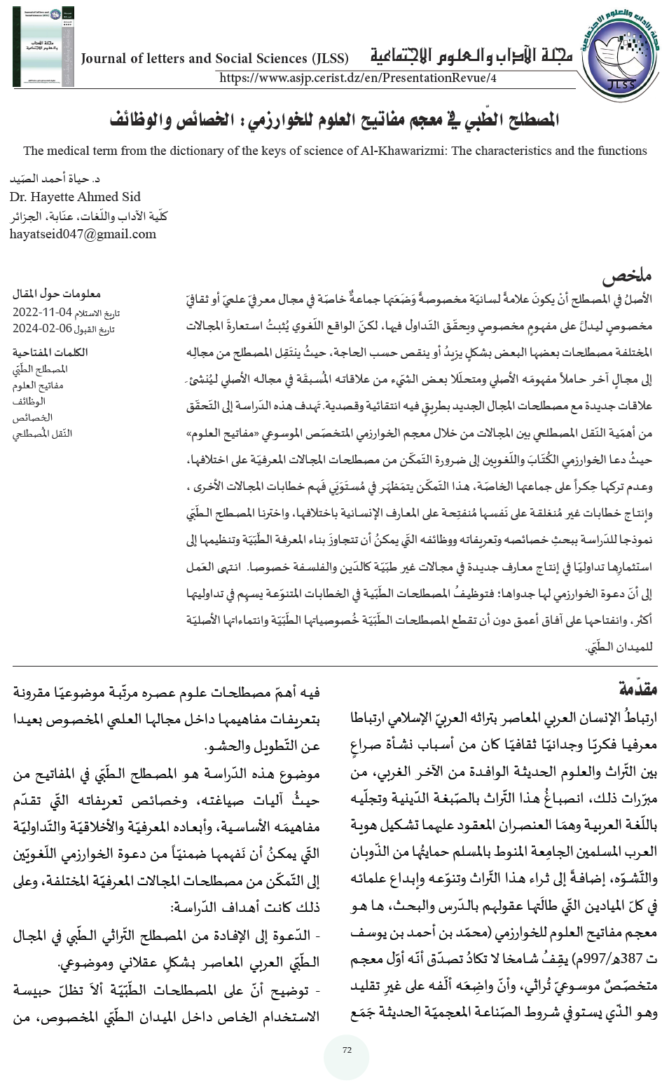 أحمد الصّيد ح. (2025). المصطلح الطّبي في معجم مفاتيح العلوم للخوارزمي: الخصائص والوظائف: معلومات حول المقال: تاريخ الاستلام 2022-11-04 ***** تاريخ القبول 06-02-2024. مجلة الآداب و العلوم الإجتماعية, 21(01), 72–90. استرجع في من https://revues.univ-setif2.dz/index.php/jlss/article/view/115