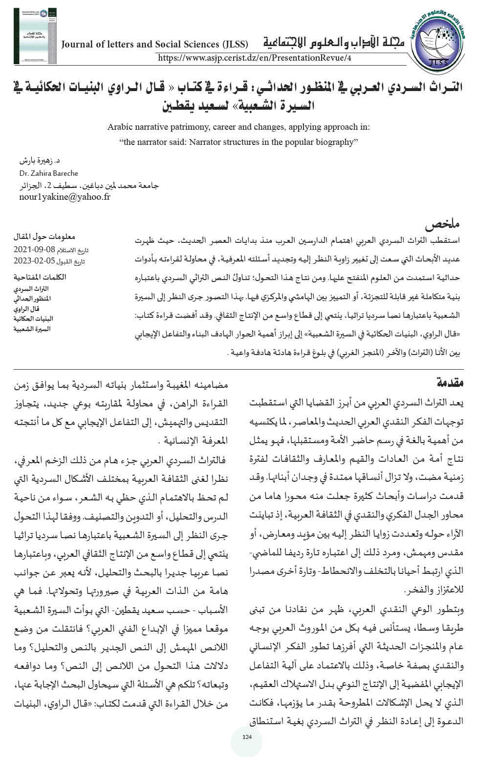 التراث السردي العربي في المنظور الحداثي: قراءة في كتاب « قال الراوي البنيات الحكائية في السيرة الشعبية» لسعيد يقطين
