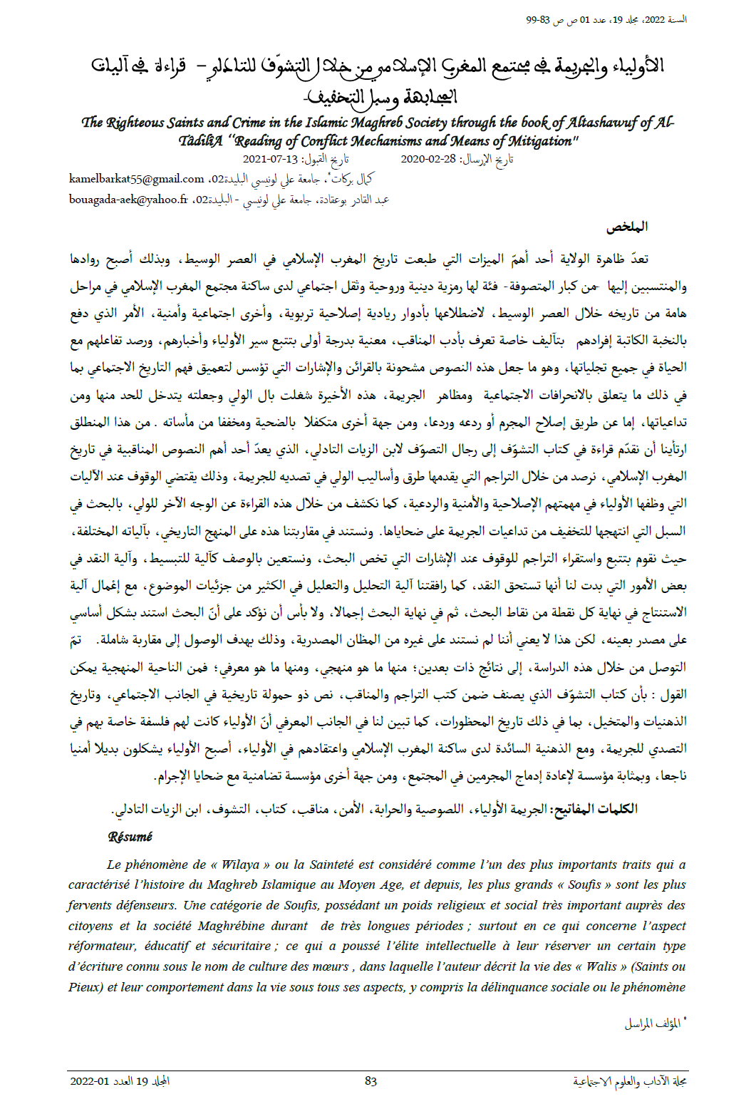 The Righteous Saints and Crime in the Islamic Maghreb Society through the book of Altashawuf of Al-TâdilîA ‘‘Reading of Conflict Mechanisms and Means of Mitigation''