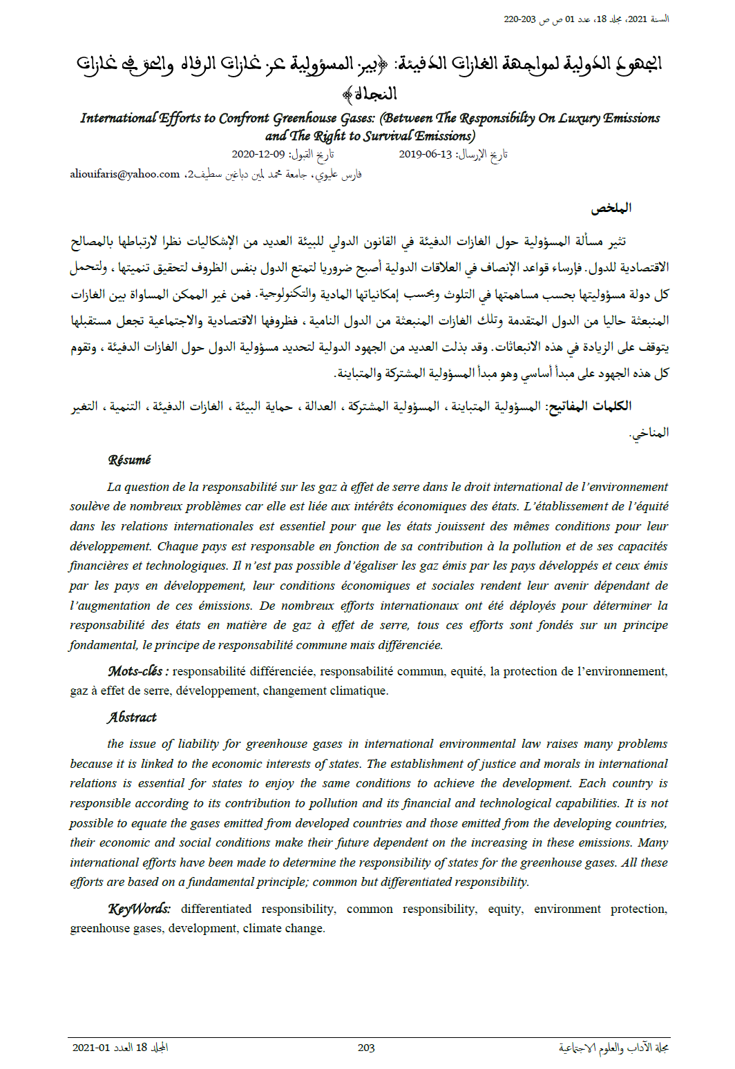 عليوي ف. (2025). International Efforts to Confront Greenhouse Gases: (Between The Responsibilty On Luxury Emissions and The Right to Survival Emissions): تاريخ الإرسال: 2019-06-13 ***** تاريخ القبول: 2020-12-09. Journal of Literature and Social Sciences, 18(01), 203–220. Retrieved from https://revues.univ-setif2.dz/index.php/jlss/article/view/233