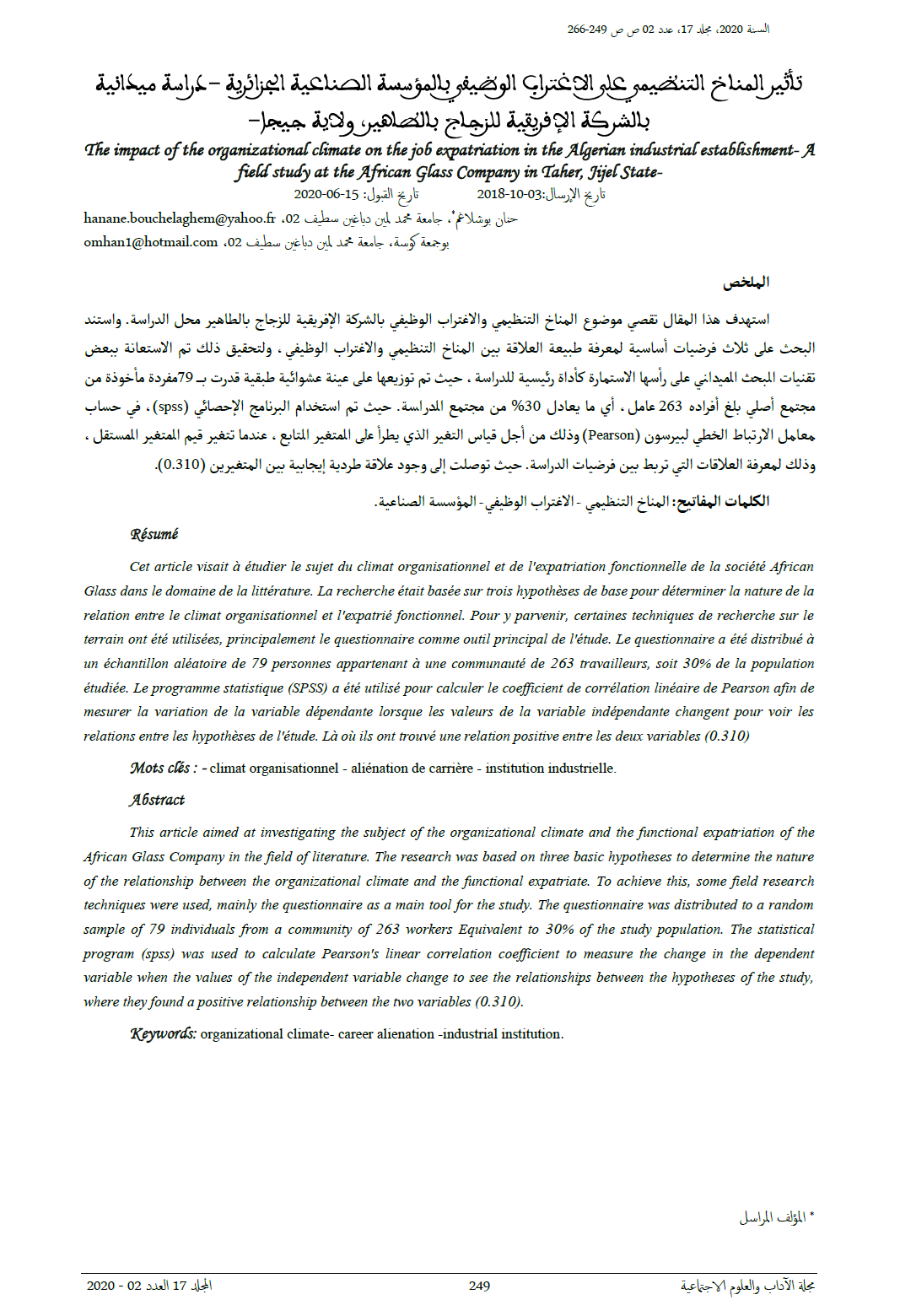 تاريخ الإرسال: 2018-10-03 تاريخ القبول: 2020-06-15