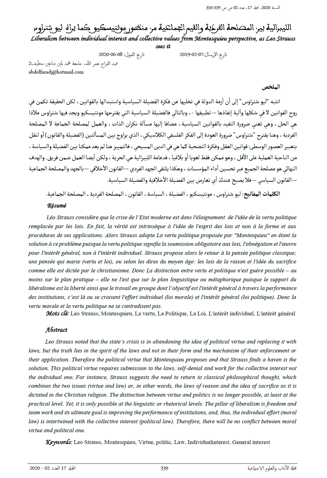 الليبرالية بين المصلحة الفردية والقيم الجماعية من منظور مونتيسكيو كما يراه ليو شتراوس