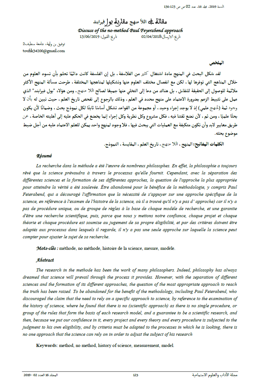 بن ولهة ت. (2019). مقالة في اللاّ منهج مقاربة بول فيرابند: تاريخ الارسال: 02/04/2018 تاريخ القبول: 13/06/2019. Revue Des Lettres Et Des Sciences Sociales, 16(02), 123–136. Consulté à l’adresse https://revues.univ-setif2.dz/index.php/jlss/article/view/399