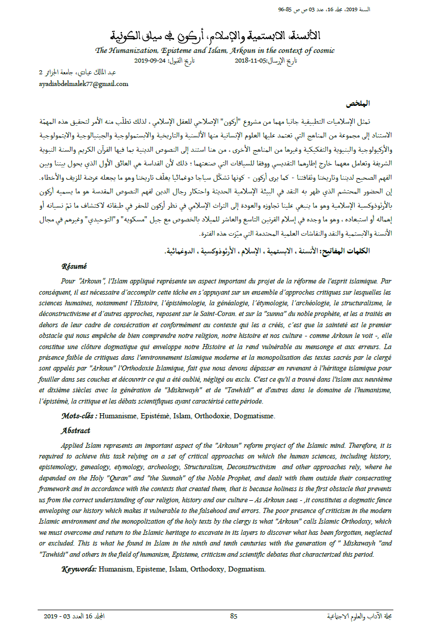 Humanisme، Epistémè، Islam، Orthodoxie، Dogmatismeالملخص
