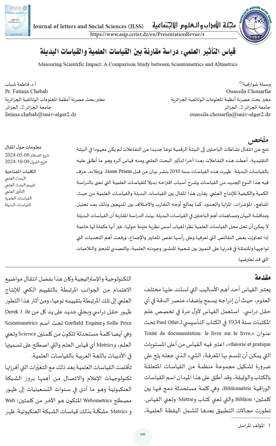 Scientific research, evaluation, scientific impact, scientometrics, altmetricsالعربية