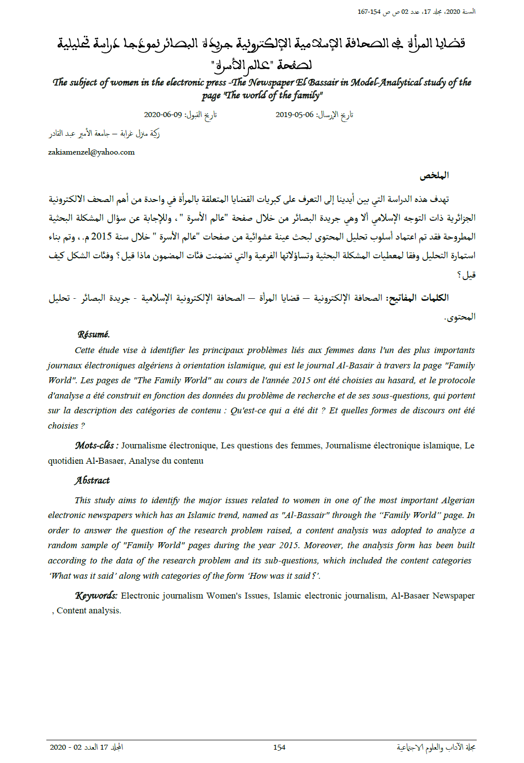 معاينة مجلد 17 عدد 02 (2020): 17(02)-2020